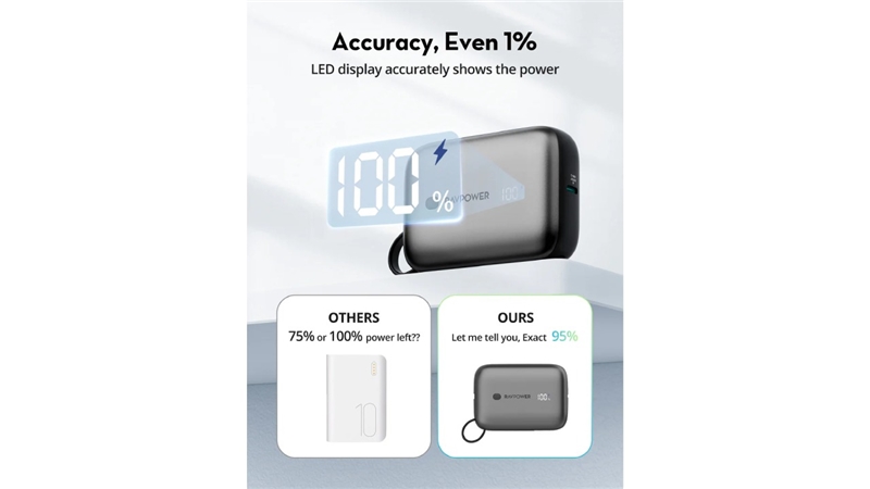 یکی از مزیت های اصلی پاوربانک راوپاور مدل RP-PB1224، طراحی بسیار جمع وجور و سبک آن است. با ابعاد 4.4 x 2.0 x 1.0 اینچ و وزن کمتر از 6.7 اونس، این پاوربانک به راحتی در جیب یا کیف شما جا می شود. این ویژگی، آن را به یک انتخاب ایده آل برای افرادی که دائم در سفر یا در حال حرکت هستند، تبدیل می کند. طراحی شیک و ظریف این دستگاه همچنین به زیبایی و کاربردی بودن آن افزوده است.