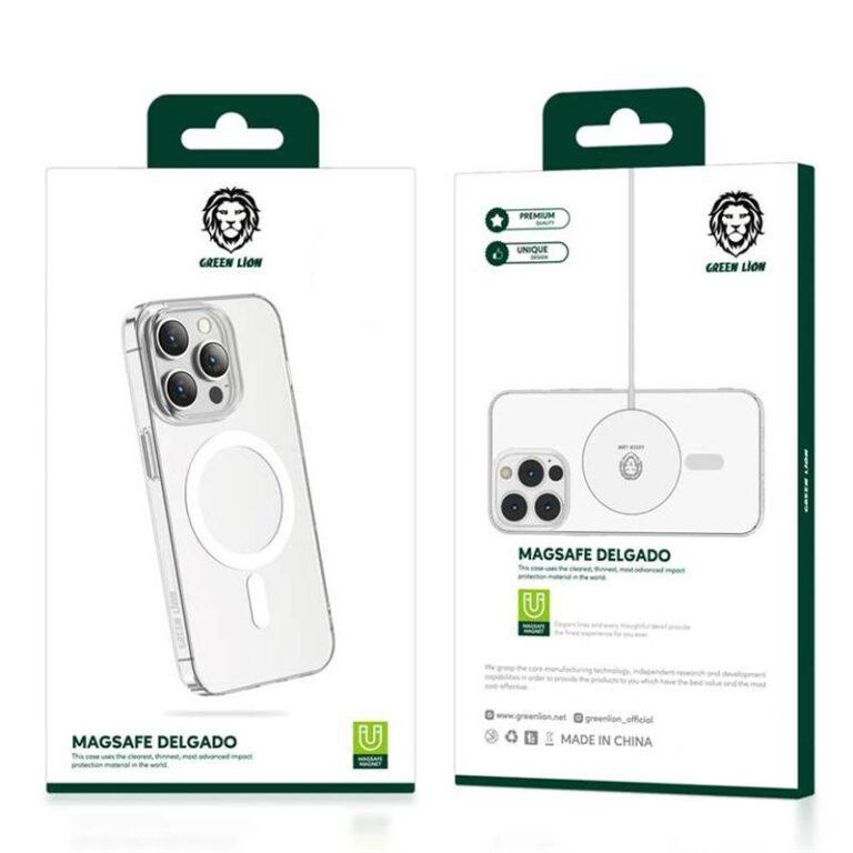 قابهای محافظ گوشی از مهمترین لوازم جانبی هستند. چرا که ایمنی و سلامت گوشی را در برابر بسیاری از آسیبها تضمین میکنند.کاور گوشی یکی از ملزومات اساسی گوشی موبایل میباشد و تولید کنندگان زیادی در زمینه کیف و کاور گوشی وجود دارند که متاسفانه تولیدکننده جنس بی کیفیت و فیک نیز بسیار زیاد میباشد و انتخاب را برای مصرف کننده دشوار میکند. شرکت گرین یکی از بهترین و محبوب ترین تولید کننده لوازم جانبی گوشی موبایل و تبلت و … در چین،امارات و خاورمیانه میباشد و دلیل این محبوبیت کیفیت بسیار بالای این محصولات این شرکت میباشد. از جدیدترین محصولات این شرکت میتوان به کاور گرین مدل Magsafe-Delgadoاشاره کرد.کاور گرین مدل Magsafe-Delgado یکی از جدیدترین محصولات شرکت گرین میباشد.این قاب با کیفیت از پلی کربنات و Tpu ساخته شده است.کاور گرین مدل Magsafe-Delgado در برابر ضربه و خط وخش دارای مقاومت فوق العاده بالایی میباشد و به خوبی از گوشی شما محافظت میکند .ویژگی کاور گرین مدل Magsafe-Delgado پشتیبانی از شارژ بیسیم (Magsafe) میباشد با این قابلیت دیگر لازم نیست برای شارژ گوشی قاب رو از گوشی در بیارید و با همین قاب گوشی موبایلتان را شارژ کنید.این قاب دارای لبه های برجسته برای محافظت از صفحه نمایش گوشی و دوربین گوشی میباشد و دارای ضخامت کم در عین حال مقاومی میباشد تا شما به راحتی گوشی رو در دستتون بگیرین.این قاب به صورت شفاف طراحی شده و در اثر گذر زمان رنگش تغییری نمیکند.
