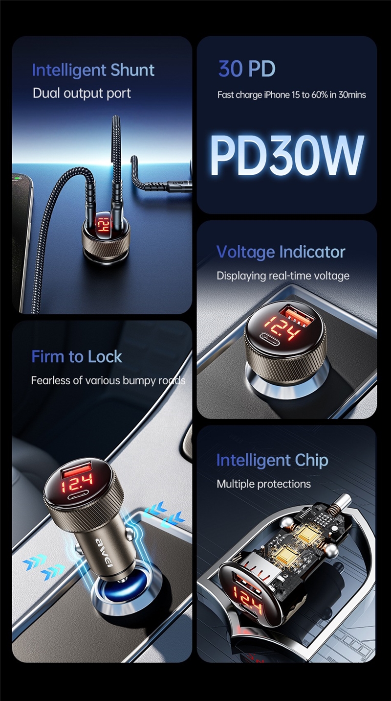 شارژر فندکی اوی Awei C-859 توان 30 وات
