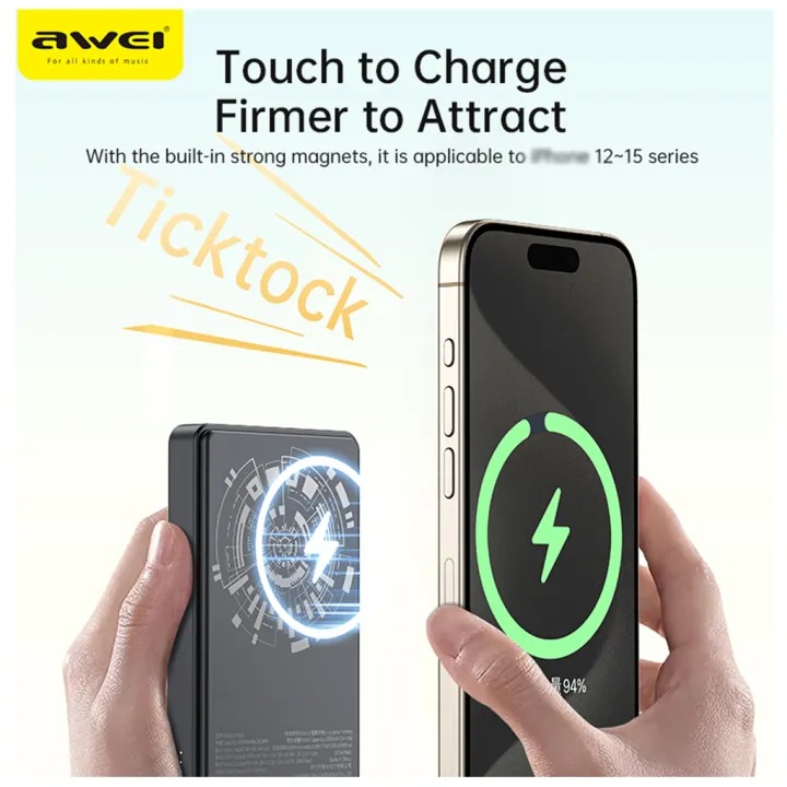 پاوربانک وایرلس 10000 مگنتی اوی Awei P33K توان 22.5 وات