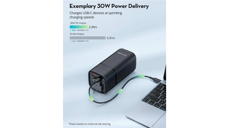 وجود درگاه USB Type-C و USB Type-A این پاوربانک را با طیف وسیعی از گوشی ها، تبلت ها و لپ تاپ های سازگار با شارژ از طریق USB-C هماهنگ کرده است. نشانگرهای LED میزان شارژ باقی مانده را نمایش می دهند و طراحی سبک و قابل حمل آن، استفاده در سفرها و محیط های کاری را آسان می کند.