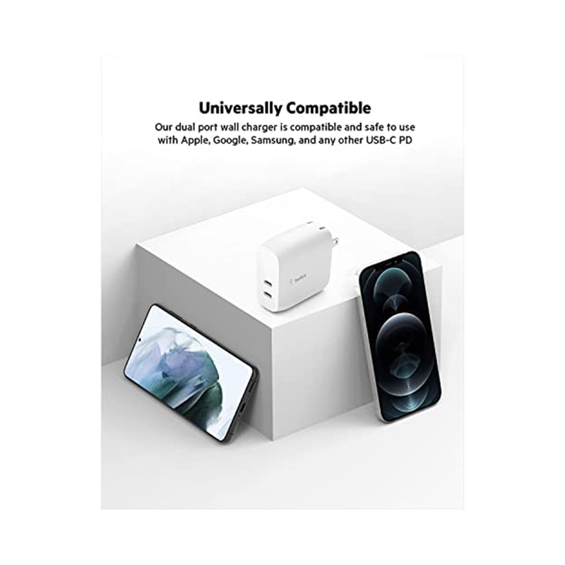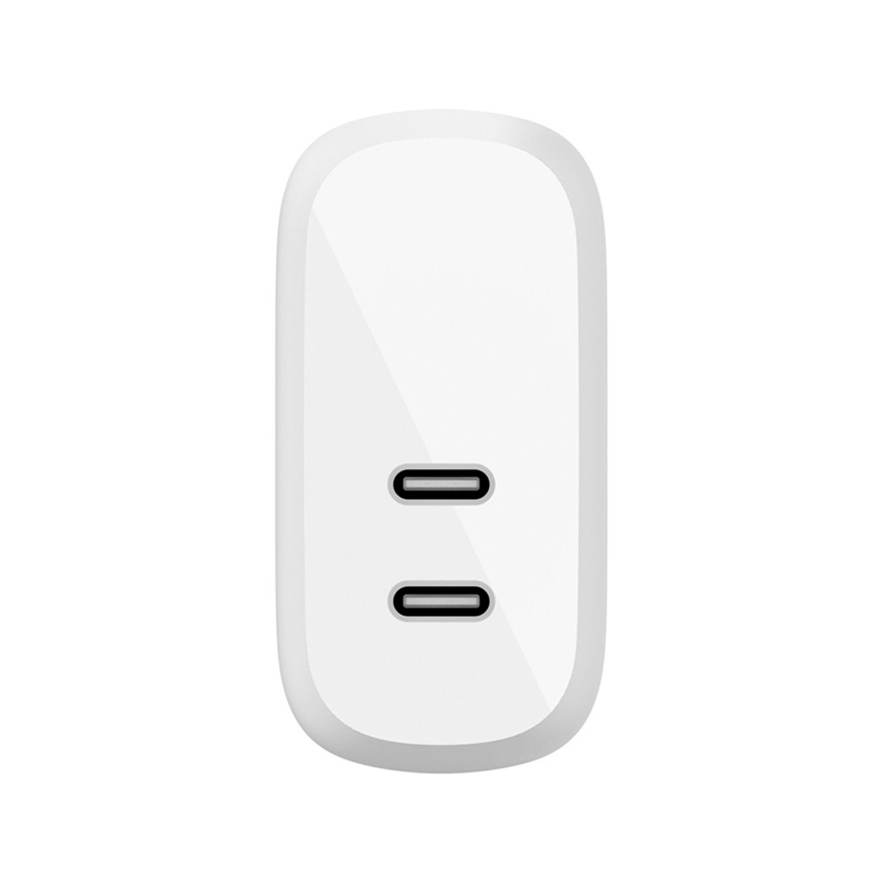 این شارژر 40 واتی از بلکین با مدل WCB006vfWH دارای دو پورت USB-C میباشد که هر خروجی آن 20 وات در اختیار کاربر قرار میدهد و به او امکان شارژ سریع همزمان دو دستگاه را فراهم میسازد.