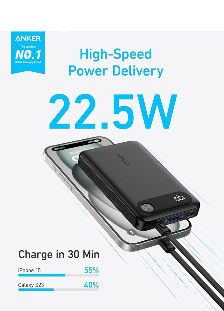 ✔️ آنچه دریافت می کنید: پاور بانک Anker (10000 میلی آمپر ساعت، 22.5 وات)، قابلیت USB-c، دفترچه راهنمای دستورالعمل.