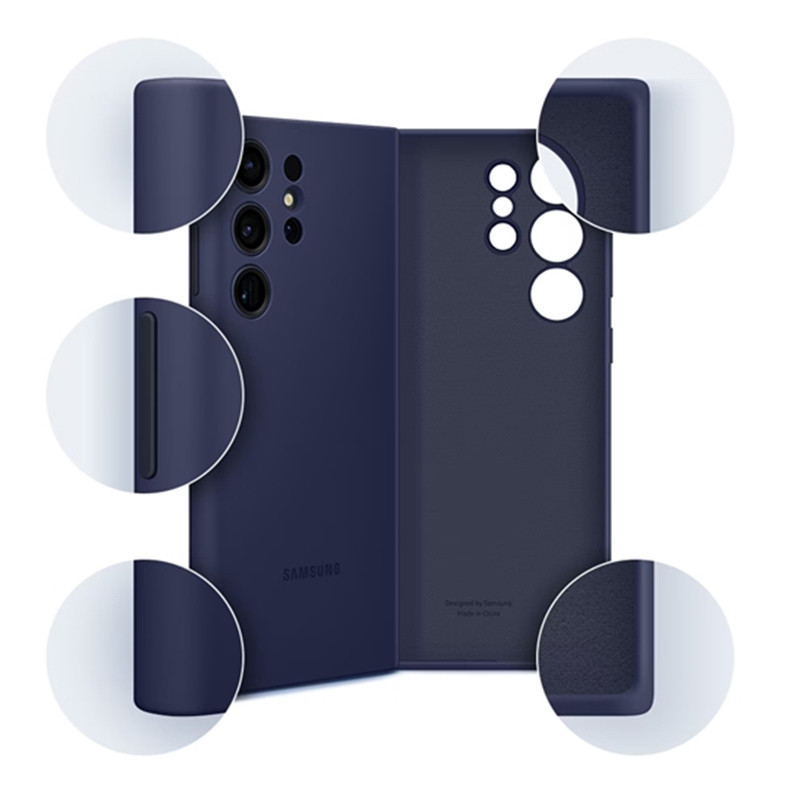 این قاب اصلی برند سامسونگ از جنس سیلیکون ساخته شده و می تواند به خوبی از گوشی شما محافظت کند و به دلیل داشتن برش ها و اندازه هایی دقیق در ورودی پورت ها اجازه دسترسی آسان به درگاه های گوشی تلفن همراه را به کاربران می دهد. کاور Silicone Cover سامسونگ Galaxy S23 Ultra با پوشش 360 درجه ای تمامی لبه های گوشی شما را پوشش می دهد. داخل قاب جنس پارچه ای مانند دارد تا از ایجاد خط و خش پشت گوشی شما جلوگیری کند. نکته قابل توجه در این مدل قاب پوشش لنز دوربین می باشد که سبب محافظت بیشتر از لنز دوربین شده و همچنین پوشش این قاب کامل بوده و از قسمت پایینی گوشی موبایل نیز محافظت می کند و با این وجود دسترسی به درگاه های گوشی به آسانی انجام می گیرد. نکته مهم درباره این قاب محافظت بالای آن از گوشی می باشد که دلیل آن ضخامت مناسب این قاب است.