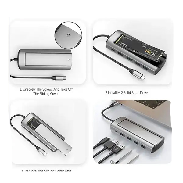 پشتیبانی از SATA + NVME پشتیبانی از هارد SSD M2 2230-2242-2260-2280 HDMI 4K@30Hz فست شارژ PD 100W سرعت انتقال اطلاعات 5Gbps