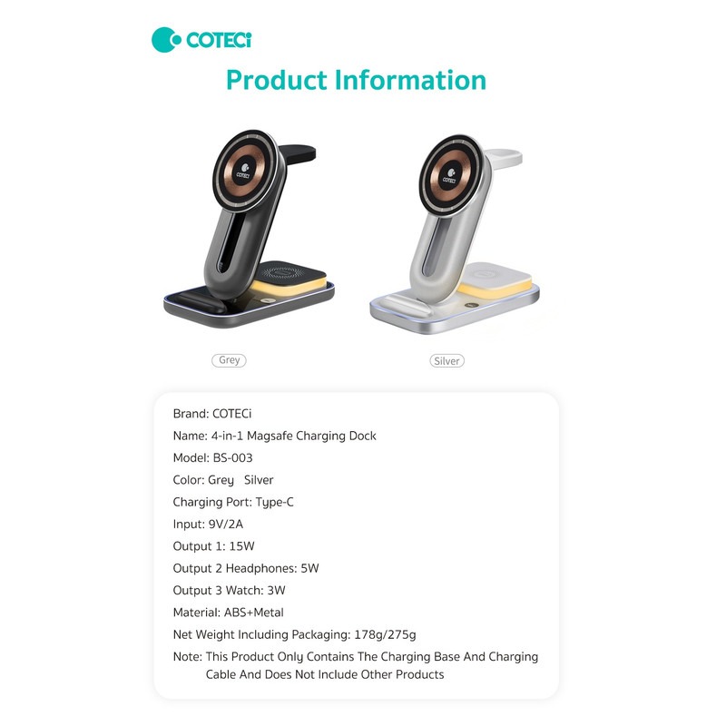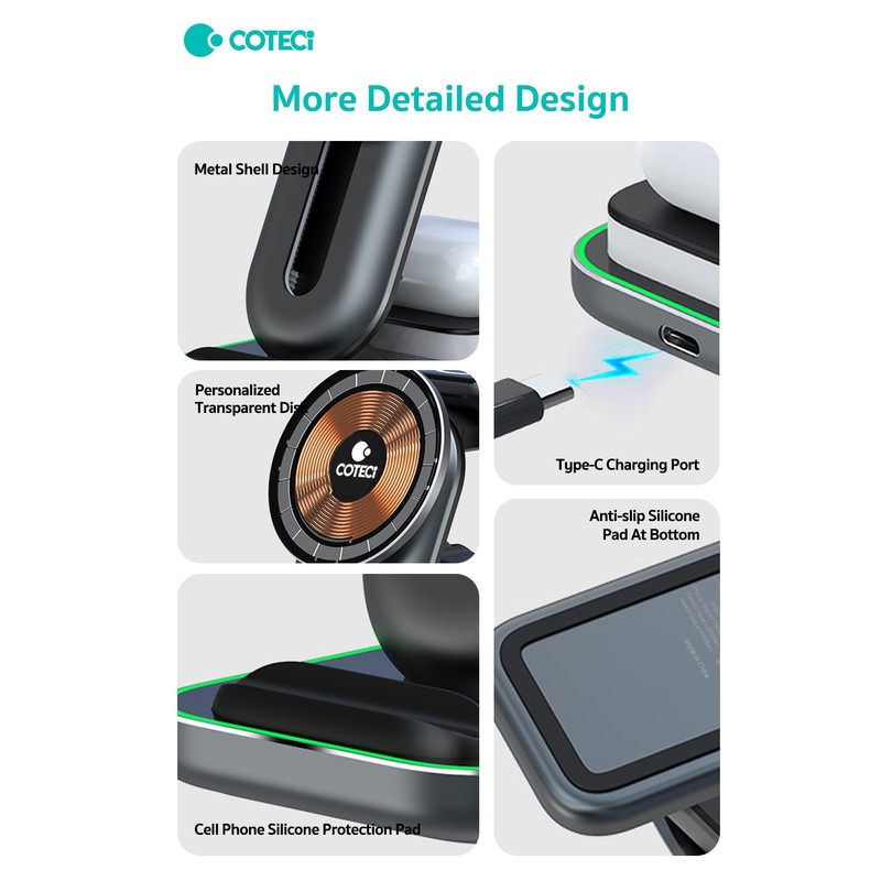 هولدر و شارژر وایرلس 4 در 1 کوتتسی Coteetci BS-003