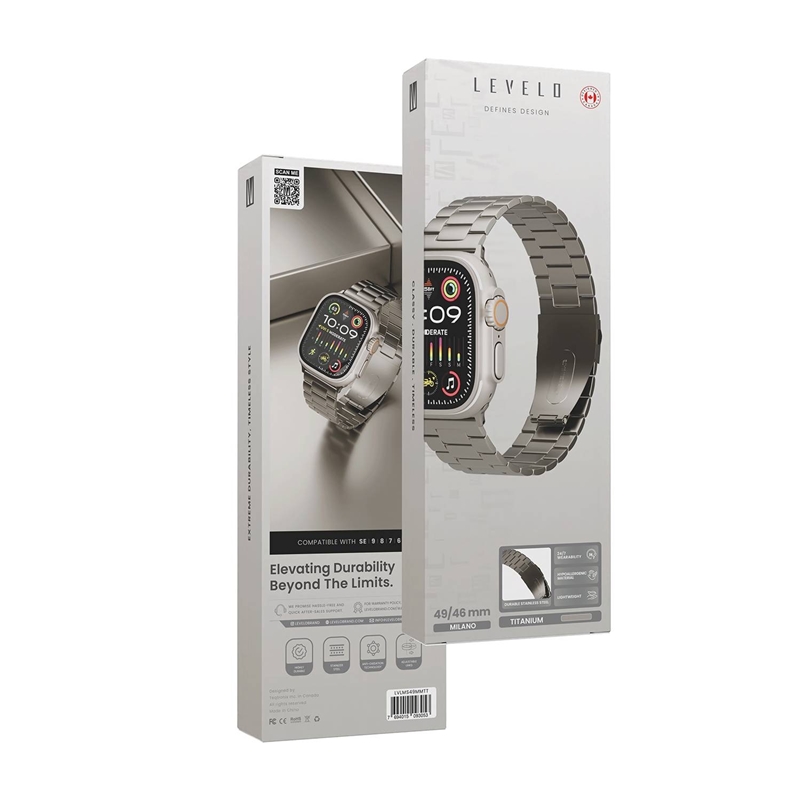 بند استیل اپل واچ برند Levelo مدل Monet مناسب برای سایز 44/45/46/49 میلی متری