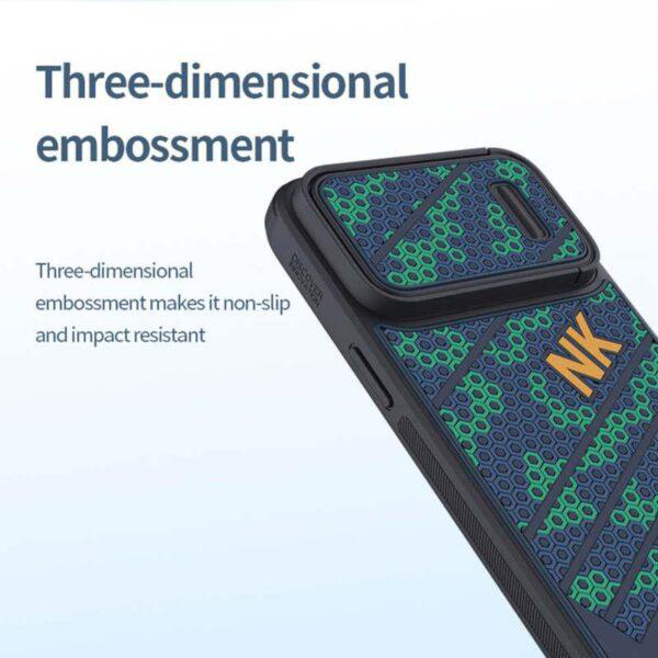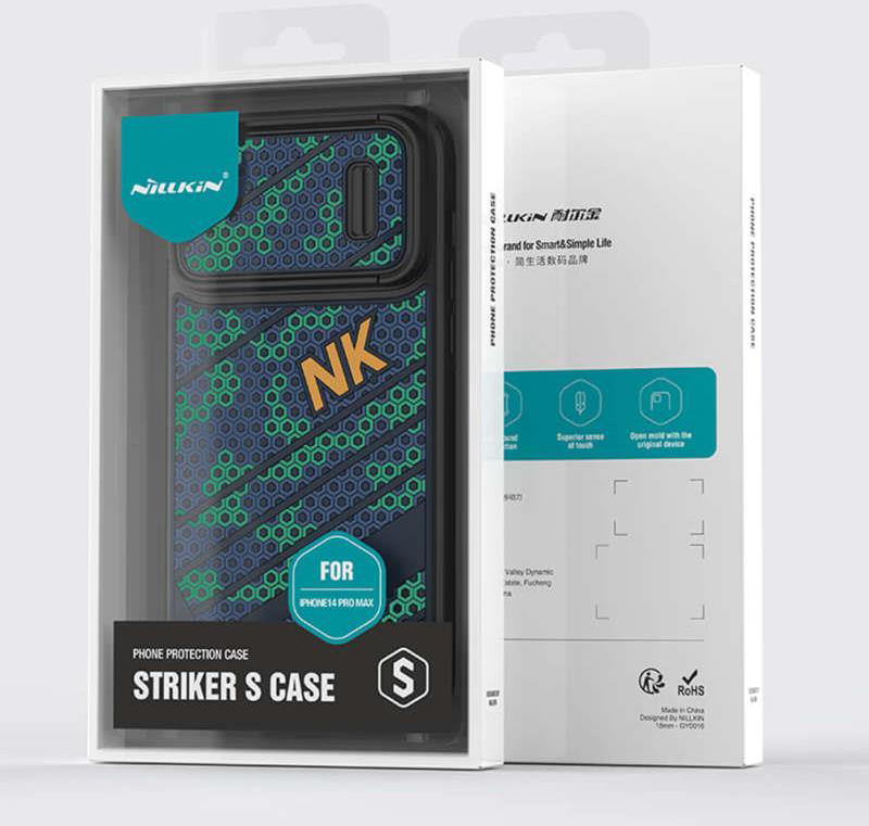 این قاب سبک و خوش دست بوده و تنها در قسمت لنز دوربین مقدار 0.2 سانتی متر برجستگی جهت محافظت بیشتر از لنز وجود دارد. قاب فوق جدا از مقاوم بودن در مقابل ضربه با بافت لانه زنبوری، سبک ورزشی داشته و دارای بلوک های رنگی برجسته و تزئینی است که زیبایی خاص و دلنشینی را بری گوشی آیفون 14 پرو به ارمغان می آورد. طراحی شکیل و منحصر به فرد این محصول و امکان پوشش 360 درجه ای در تمامی قسمت های گوشی، خیال کاربر را از بابت حفاظت و اندازهی دقیق آن راحت میکند.،در زیر درب کشویی قاب، فنری قرار داده شده است که باعث راحت تر باز و بسته شدن درب کشویی میشود که از طول عمر بسیار بالایی برخوردار است.،جنس مرغوب این قاب ضد ضربه بوده و در برابر چربی و اثر انگشت و گرد و غبار مقاوم است. در قاب نیلکین مدل استریکر اِس آیفون 14 پرو از مواد سیلسکون نرم و پلاستیک سخت ( TPU و PC ) که سازگار با محیط زیست و غیر سمی است به کار رفته که برای مقاوم بودن در برابر خط و خش ، ضربه و شوک مناسب میباشد. در این قاب محافظ از پلاستیک سخت بسیار با کیفیت استفاده شده و همچنین از مواد سیلیکونی درجه 1 استفاده شده که امنیت و محافظت گوشی iPhone 14 Pro را تضمین و خیال کاربر را از ضربه و شک ناگهانی به iPhone 14 Pro راحت میکند.این قاب سبک و خوش دست بوده و در قسمت لنز دوربین محافظ کشویی دارد که از لنز دوربین در برابر سخت ترین ضربه ها مرافبت میکند و برای محافظت از حریم خصوصی شما هم کاربردی است.