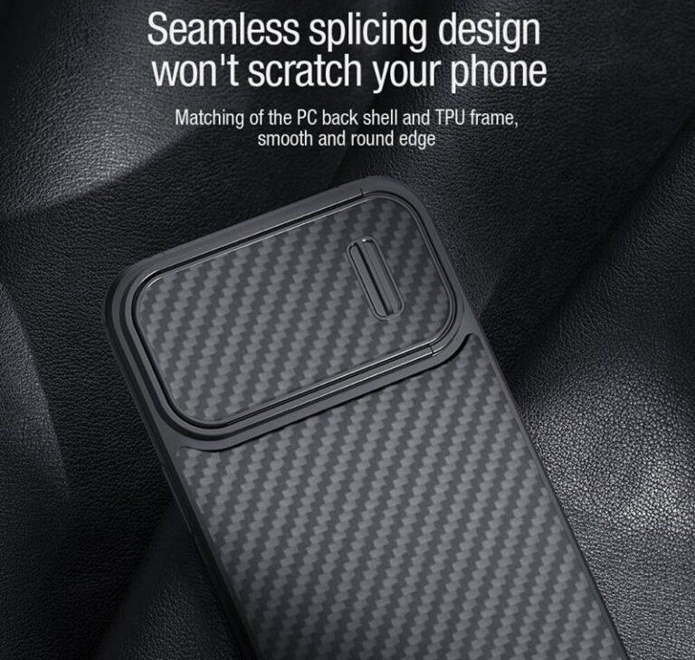 برند نیلکین را با لوازم جانبی باکیفیتی که تولید می‌کند می‌شناسیم.یک برند خلاق که ترکیب مهندسی و زیبایی‌شناسی را روی محصولاتش پیاده می‌کند و این قاب یک نمونه‌ از این ترکیب هیجان‌انگیز است.با یک قاب ایمن و خوش‌استایل ایمنی و استایل گوشی‌تان را همزمان ارتقا دهید.کاور نیلکین مدل Synthetic fiber S case کاوری خوش‌ساخت و جذاب که هم امنیت گوشی شما را بالاتر می‌برد و هم با طراحی جذابش استایلی یونیک و خاص به شما می‌بخشد.این قاب نسخه ارتقا یافته Synthetic fiber میباشد که علاوه بر ویژگی های قبلی خود دارای محافظ لنز نیز میباشد.در میان گزینه‌های خرید لوازم جانبی ، این مدل قابی سخت و ایمن است که تمام قسمت‌های بدنه گوشی را پوشش می‌دهد و اگر گوشی از دست‌تان بیفتد یا ضربه‌ای به آن بخورد کوچکترین آسیبی به بدنه نمی‌رسد.از جنس فیبر کربن و پلاستیک سخت است.کاور نیلکین مدل Synthetic fiber S case با ترکیب فیبر کربن و پلاستیک سخت ترکیبی از سفتی و نرمی را به گوشی‌تان اضافه می‌کند.پلاستیک سخت و فیبر کربن به زیبایی در کنار یکدیگر قرار گرفته‌اند و ترکیب این دو ماده هم امنیت بسیار بالایی به قاب داده است.کاور نیلکین مدل Synthetic fiber S case با تکنیک تزریق متریال‌ها و همچنین حرارت‌دهی در دمای بالا ساخته شده است و مقاومت بسیار بالایی در برابر ضربه دارد. در برابر خط و خراش هم مقاوم است.هیچ خط و خراشی روی قاب نمی‌افتد و گوشی شما هم در برابر خط و خش مقاوم می‌شود. این کاور طراحی جذابی دارد.طرح‌های هندسی خوش‌ساخت که روی سطح قاب به شکل دوخت وجود دارند و استایلی یونیک و منحصر به فرد به شما می‌دهند. استایلی که نظیر آن را کمتر دیده‌اید.تکسچر و طرح پشتی آن نرم است و وقتی آن را لمس می‌کنید این برجستگی‌هایی که به شکل دوخت هستند را کاملا احساس می‌کنید.کاور نیلکین مدل Synthetic fiber S case دقیقا متناسب با ابعاد گوشی شما طراحی شده است و هیچ مشکلی حین کار کردن با گوشی نخواهید داشت.سبک و خوش‌دست است و از کار کردن با گوشی‌تان لذت می‌برید.کاور نیلکین مدل Synthetic fiber S case لبه‌های گرد دارد و کناره‌های آن هم حالت گیردار دارد که از سر خوردن گوشی جلوگیری می‌کند.هیچ مشکلی برای گلس گوشی، شارژ وایرلس و آنتن گوشی ایجاد نمی‌کند و می‌توانید از تمام امکانات گوشی‌تان به طور کامل استفاده کنید.