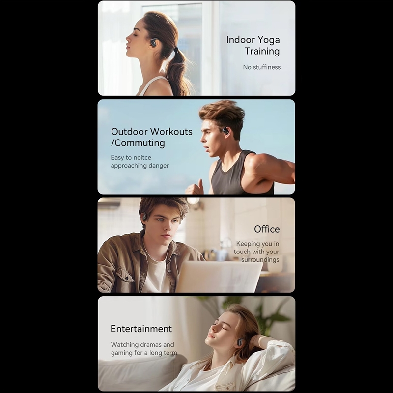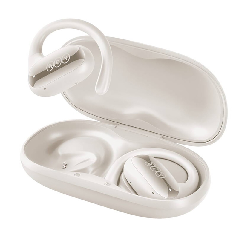 یکی از ویژگیهای خاص و متفاوت هندزفری کیو سی وای Crossky GTR2 طراحی بیرونگوشی آن است. برخلاف هندزفریهای داخلگوشی که ممکن است برای برخی کاربران حس خفگی یا فشار ایجاد کنند، این مدل با طراحی قلابمانند اطراف گوش قرار میگیرد و هیچ فشاری به داخل گوش وارد نمیکند. این ویژگی در هندزفری بلوتوث کیو سی وای Crossky GTR2 بهویژه برای استفادههای طولانیمدت بسیار مناسب است. نحوه قرارگیری آن نیز بسیار ساده است: ابتدا نوک هندزفری را بالای گوش خود قرار دهید، سپس آن را در جهت عقربههای ساعت بچرخانید تا به پشت گوش برسد و در نهایت آن را متناسب با فرم گوش تنظیم کنید.