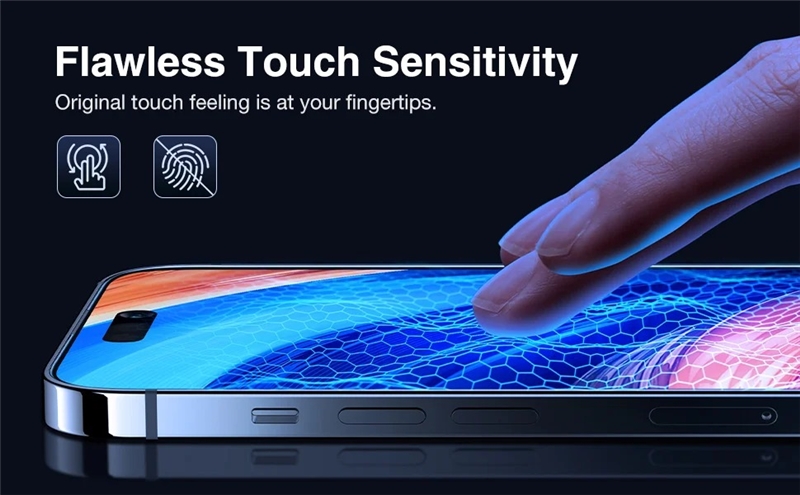 بنابراین با عبور 99% نور از گلس صفحه نمایش کریستالی فوق العاده شفاف را در اختیار خواهید داشت . همچنین عدم انعکاس نور از این سطح موجب می گردد که عمل تشخیص چهره توسط Face ID اپل توسط این گلس محدود نشده و به آسانی انجام شود.