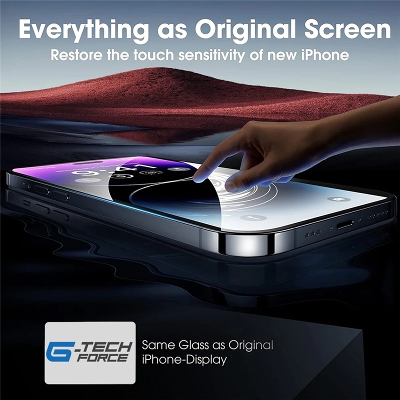 تفاوت اصلی گلس جی تک آیفون 14 پرو مکس (G-Tech G-Force Anti Dust Glass iPhone 14 Pro Max) با سایر گلس ها نیز شیشه آن می باشد؛ در مدل Anti Dust جی تک از شیشه فشرده سکوریت گرمادیده و فوق العاده مقاوم ساخت کمپانی شیشه سازی “ASAHI” ژاپن استفاده شده است.