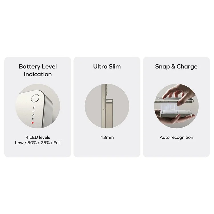 طراحی باریک و وزن سبک آن، حمل و نقل را آسان کرده و با دستگاه های سری iPhone 12 به بعد و برخی مدل های اندرویدی سازگار است. این پاوربانک امکان شارژ هم زمان دو دستگاه (یک بی سیم و یک سیمی) را دارد و دارای نشانگر LED برای نمایش میزان باتری است.