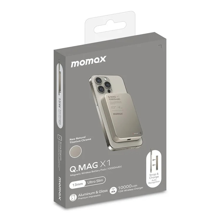 پاوربانک مگ سیف 15 وات 10000 میلی آمپر مومکس مدل Q.MAG X1یک باتری همراه 10000 میلی آمپر ساعتی است که از شارژ بی سیم مغناطیسی با توان 15 وات برای دستگاه های MagSafe پشتیبانی می کند. این پاوربانک از طریق درگاه USB-C امکان شارژ سریع با توان خروجی 20 وات (PD) و ورودی 18 وات را فراهم می کند.