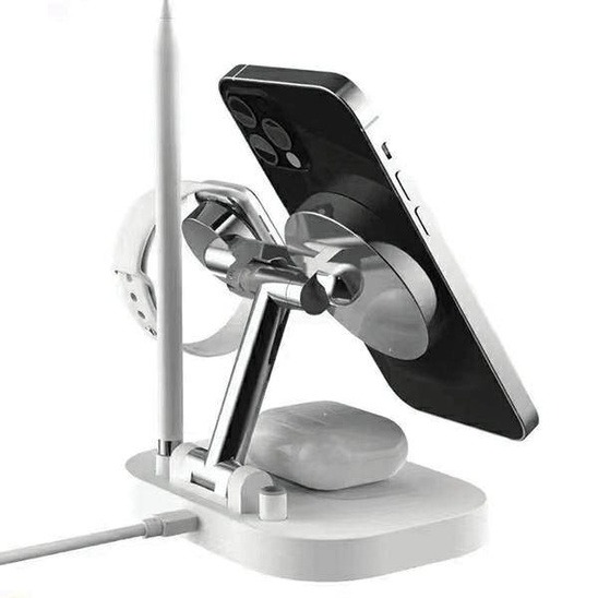استند و شارژر وایرلس چندکاره مگ سیف اوی Awei W22 4 in 1 توان 15 وات با قابلیت شارژ اپل واچ