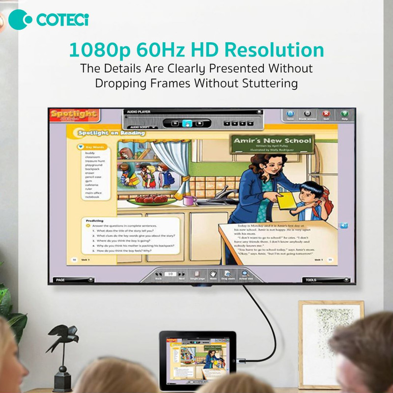 کابل تبدیل تصویر Coteetci 33024 دارای رزولوشن 1080P است. البته کیفیت خروجی بستگی به دستگاه شما نیز داشته که ایا از این کیفیت پشتیبانی می کند یا خیر. تصاویر با این کابل صاف و پایدار بوده و شما در استفاده از این کابل به مشکلی برنخواهید خورد. همچنین کابل آیفون به تلویزیون Coteetci 33024 از نرخ فریم 60 فریم بر ثانیه پشتیبانی کرده و در نتیجه برای تماشای انواع تصاویر مناسب است. همچنین این کابل از چرخش تصویر در زاویای 90، 180 و 270 درجه پشتیانی می‌کند.