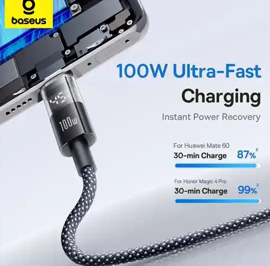 کابل شارژ تایپ سی 1 متر بیسوس Baseus Display II 100W fast Charging Cable CB000158