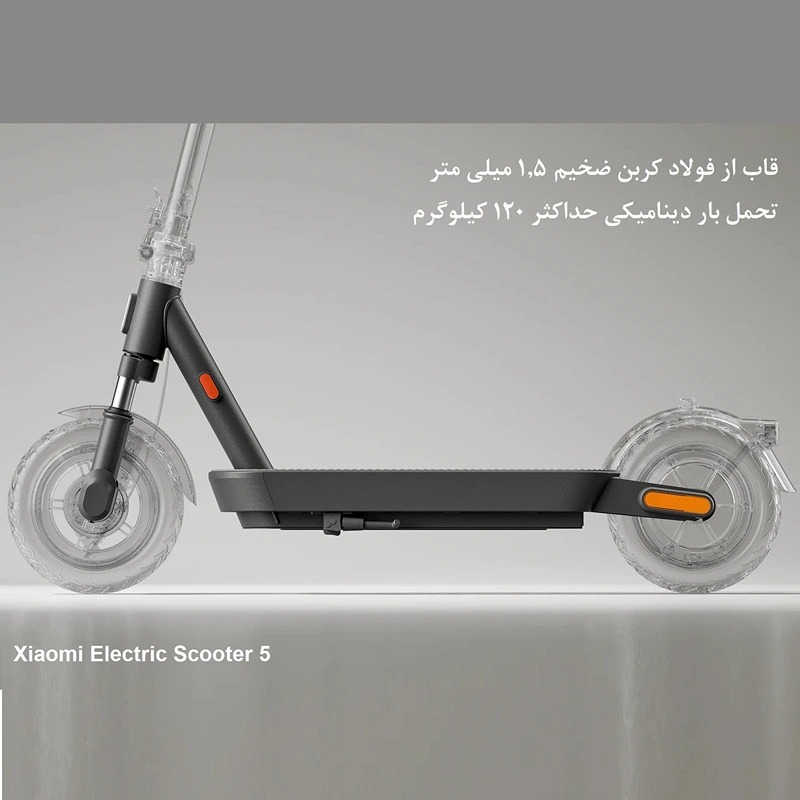 اسکوتر برقی شیائومی مدل Xiaomi Electric Scooter 5 یکی از پیشرفتهترین وسایل حملونقل شهری است که با طراحی شیک، امکانات مدرن و عملکرد قوی، برای جابجاییهای سریع، اقتصادی و سازگار با محیط زیست در مسافتهای کوتاه تا متوسط طراحی شده است. این اسکوتر با ظاهری ساده اما جذاب و کاربردی، گزینهای ایدهآل برای افرادی است که به دنبال راحتی در ترددهای روزمره هستند. بدنه مقاوم از جنس فولاد کربنی با ضخامت 1.5 میلیمتر و وزن 20.1 کیلوگرم، استحکام و دوام بالایی را تضمین میکند و برای استفاده در شرایط آبوهوایی متنوع مناسب است.