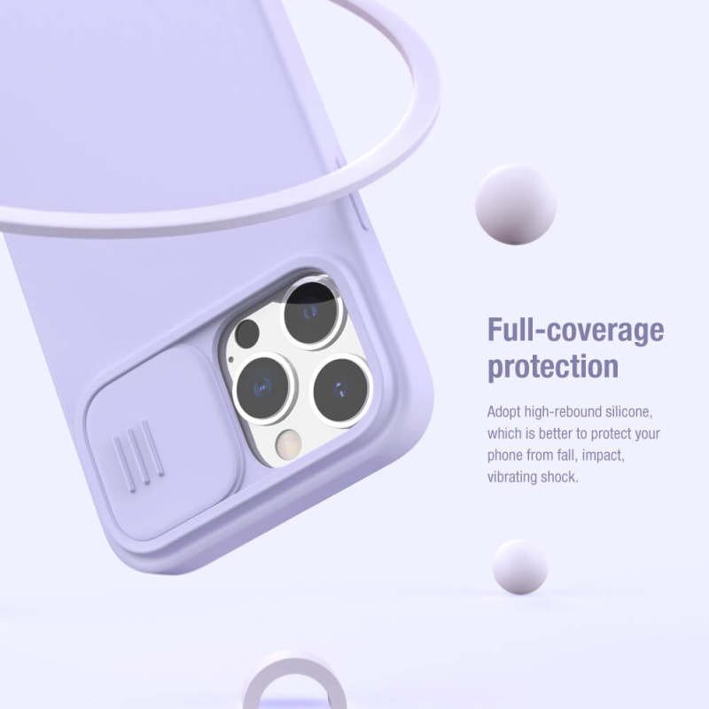 ین قاب نیلکین از مواد سیلیکونی تشکیل شده است که بصورت شیک و زیبا طراحی شده است که ضداثر انگشت و ضد لکه پذیری و ضد خط و خش و ضربه و آب میباشد و با توجه به طراحی به کار گرفته شده در قاب نیلکین Camshield silky باعث عدم لغزش و سرخوردگی در دستان شما میشود،قاب نیلکین کمشیلد بصورت کامل قسمت پشتی گوشی و کناره های گوشی آیفون 14 پلاس را پوشش میدهد و از گوشی در برابر خط و خش محافظت میکند بر روی دکمه های گوشی محافظه ای تعبیه شده است که علاوه بر حفاظت از دکمه مانعی را برای شما ایجاد نکند و قسمت پورت ها و سوکت شارژ به درستی تعبیه شده است که تاثیری بر عملکرد آنها نگذارد.امروزه دوربین های گوشی بصورت برآمده طراحی شده اند و نیاز به مراقبت بیشتری دارند قاب در قسمت دوربین یک پوشش کشویی قرار داده شده است که مواقعی که نیاز به استفاده از دوربین ندارید میتوانید پوشش کشویی قاب را جهت محافظت از لنز دوربین قرار دهید و همچنین از حریم شخصی محافظت کنید.