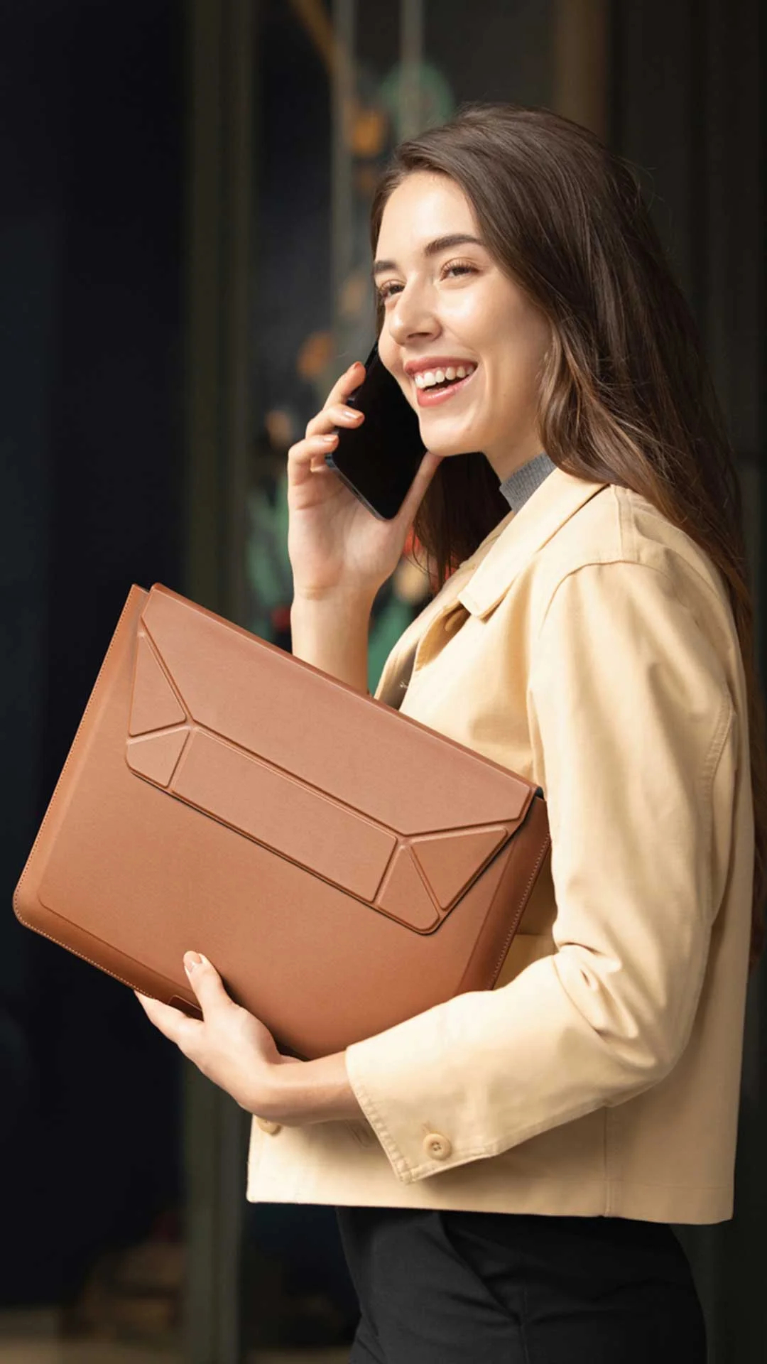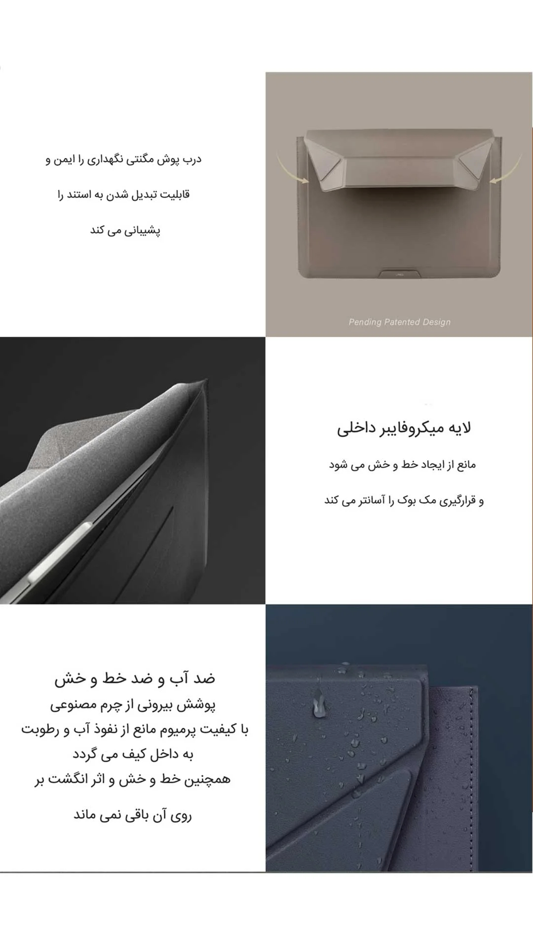 با قابلیت قرار گیری کیف بصورت مگنتی در زاویه 25 درجه به استند رومیزی تبدیل می شود . تا نگهداری از آن را آسانتر نموده و برای استاده طولانی مدت از آرامش بیشتری برخوردار باشید .