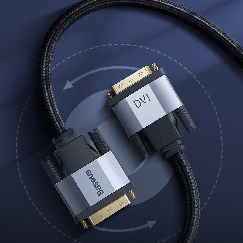درست است که امروزه پورت هایHDMI بسیار مرسوم هستند و کمتر دستگاهی وجود دارد که از پورت های دیگری مثل VGA و ... استفاده کنند. اما هنوز بسیاری از افراد هستند که به دلایل مختلفی مثل داشتن مانیتورهای قدیمی، پروژکتورها یا دستگاه های قدیمی یا حتی قیمت بالای محصولات جدید، ترجیح می دهند از پورت های قدیمی تری مثل DVI استفاده کنند. شرکت بیسوس نیز که همیشه در تولید محصولات در دسته بندی های مختلف پیشرو بوده است، یک کابل DVI به DVI تولید کرده که کیفیت بالایی نیز دارد. کابل Baseus CAKSX-Q0G Enjoyment HD DVI to DVI bidirectional یک کابل از شرکت بیسوس است که قابلیت انتقال تصویر تا کیفیت و رزولوشن 4K و HD را دارد. سری های این کابل از جنس آلومینیوم تولید شده و کابل آن نیز با روکشی از الیاف در هم تنیده ی پلاستیک مقاوم پوشیده شده است. این کابل قابلیت انتقال تصویر تا کیفیت 4K را داراست ولی باید توجه داشته باشید که هم خروجی و هم ورودی شما باید از این قابلیت پشتیبانی کنند. در غیر اینصورت تصویر با رزولوشن های پایینتر که توسط دستگاه شما پشتیبانی می شود پخش خواهد شد. در واقع این کابل برای زمانی به کار می رود که شما بخواهید کامپیوتر یا لپ تاپ خود را که دارای پورت DVI است به پروژگتور، تلویزیون یا مانیتوری که دارای همین پورت می باشد متصل کنید و در آن تصویر را پخش کنید.