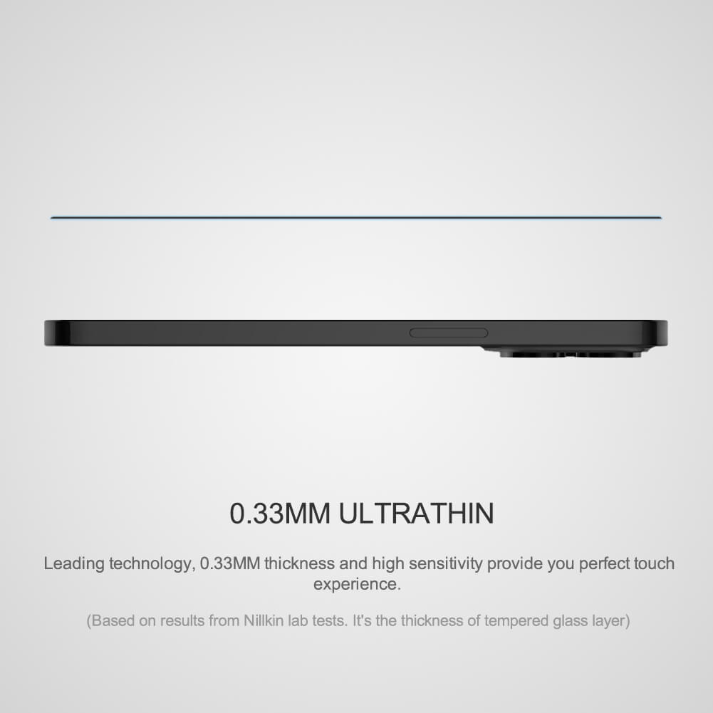 گلس Nillkin Amazing CP+ Pro for Apple iPhone 12pro Max از سری محصولات نیلکین از جنس شیشه مرغوب AGC ژاپنی و فناوری نانو HARVES برای گوشی آیفون 12پرو مکس تولید شده است. این محصول به عنوان یک محافظ بسیار قوی عمل میکند و در برابر ضربه و خط و خراش بسیار مقاوم می باشد. گلس نیلکین مدل CP+ Pro گوشی iPhone 12pro Max تنها ۰.۳۳ میلیمتر ضخامت دارد و دارای بالاترین ضریب سختی ۱۰H از صفحه نمایش گوشی آیفون 12 پرو مکس به خوبی در برابر ضربه و خط و خراش محافظت می کند.
